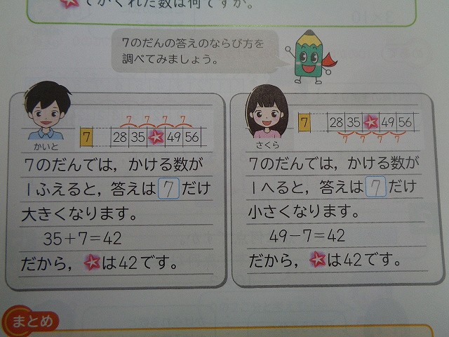 ☆マークは、7ずつふえるから7のだんの九九の答え