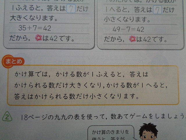 九九の表はそんなきまりでふえたり、へったりしていたのですね。