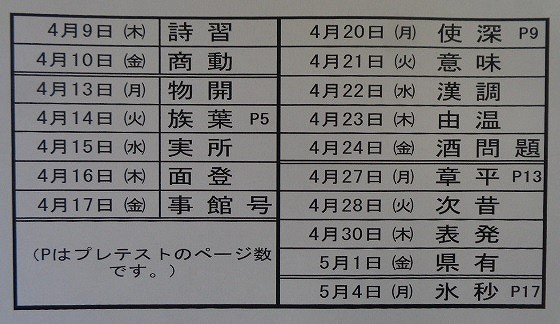 ☆プレテストは「あかねこ」に書き込むのみで、練習プリントに5回ずつ書く必要はありません。