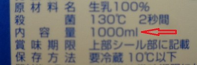 紙パックを見ると、じつは「1L」とは書かれていません。「mL」と書かれています。