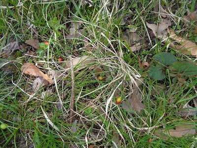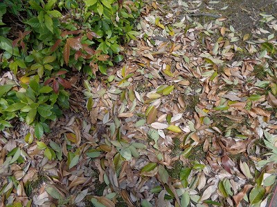 おち葉に まじって、たくさんの みどりの葉っぱ