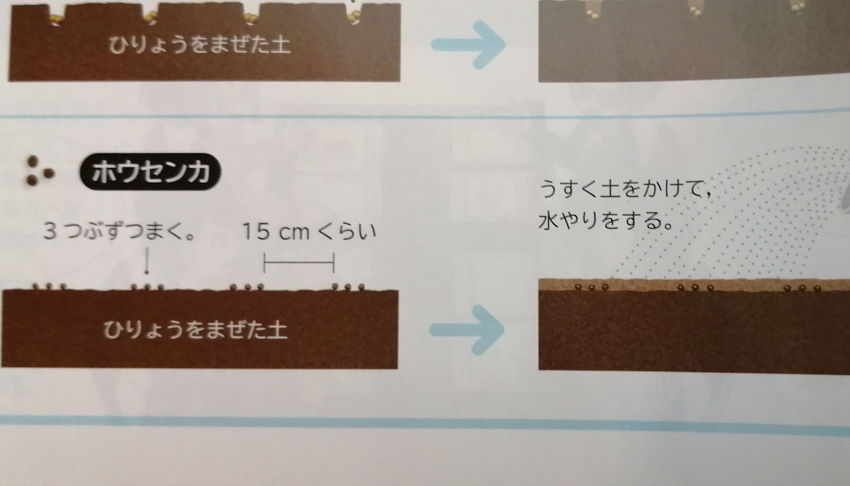 ホウセンカは「パラパラまき」です。土は少しだけかけます。