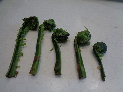 「ぜんまい」と よく似ていますが、こごみは あくが 少ないので、ゆでるだけで 食べられます。
