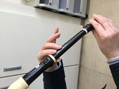 リコーダーの穴がない下の方に、右手をそっと そえるだけ!