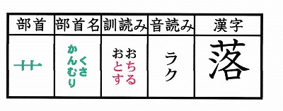 ・プリントに音読み・訓読み、部首名と部首を書きます。