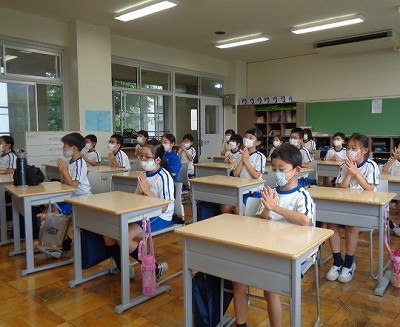 今日も、みんな楽しみのお弁当タイム。食べ終わって、姿勢良く食後の挨拶ができていました。