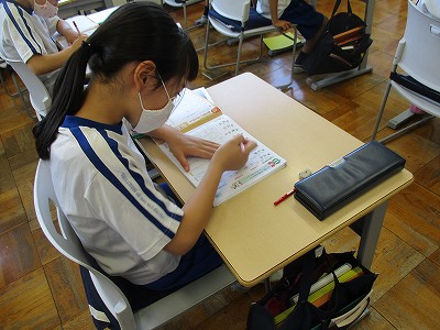 今日の1校時は国語。まず、新出漢字の練習です。