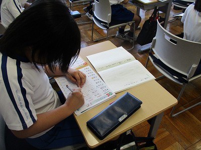 今日の1校時は国語。まず、新出漢字の練習です。