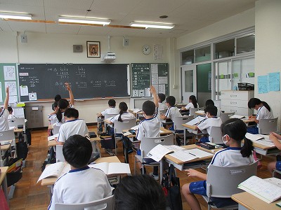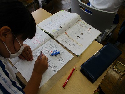 3校時は、算数。4けたの筆算の練習です。