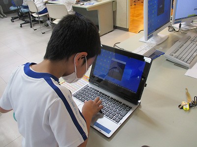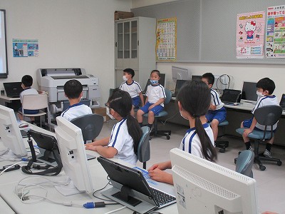 4校時は、ローマ字の学習をパソコン教室で行いました。