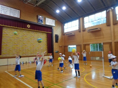 今日の体育は、ソフトバレーボールをしました。はじめてトスの練習をしました。