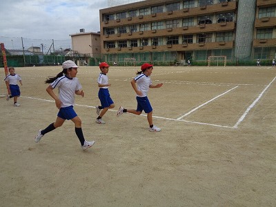 暑さが厳しい中での5分間のマラソンは、いつものマラソンとちがって同じペースで走り続けるのが大変です。