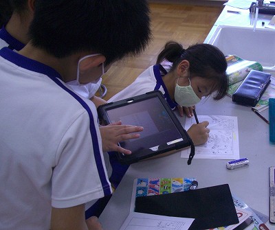 次の時間は、タブレットの写真機能で取り込んだ写真を使い、クラス全員の「オリジナル昆虫公園」を見て、意見交流をする予定です。