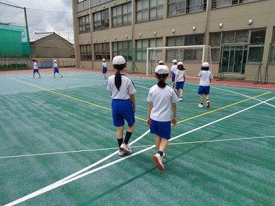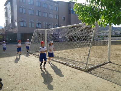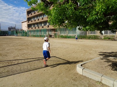 そして、運動場1周を歩いてみて、何mか考えてみました。