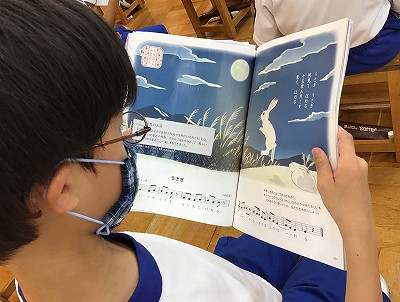 日本古謡「♪うさぎ」を歌っています。教科書に「にっぽんのうた・みんなのうた」のコーナーで紹介されています。