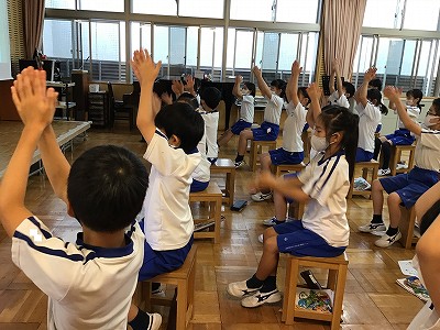 「和風な感じ」や「森の奥に人がいるような…」など、前奏を聞いただけで、このようなイメージを広げていました。「十五夜お月さん」の意味を理解し、和の旋律に合わせ、ゆったりとしたテンポで歌うことができました。