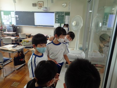 3年生の体育は、初めてのラジオ体操です。いつもの準備体操の代わりに、取り組みました。