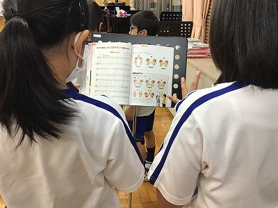 「♪レッツゴーソーレ」の二重奏に「陽気なかじや♪の合唱奏」、3年キッズが作る音楽のレパートリーは、ますます増えていきます。