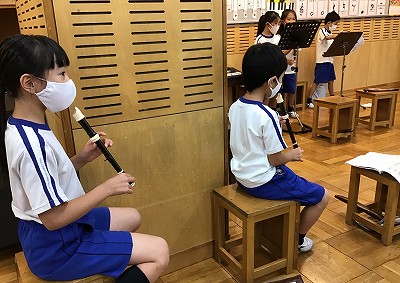 まずは、“エアリコーダー”で指の確かめを念入りに行いました。