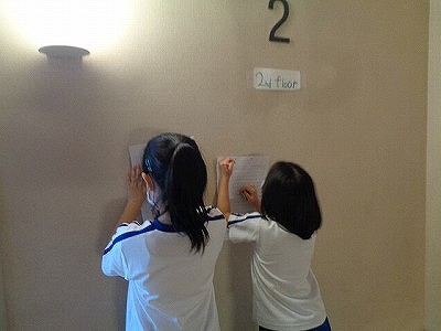英語の時間に、英語週間"MISSION"の発表が、Mr.ヨコヤマからありました。イベント委員会が校内に書いて貼った各教室・場所の英語表記を記録するというものです。