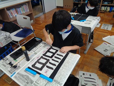 二学期2回目の習字の学習です。今日書く字は「日」です。
