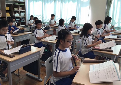 「“森&森”の練習から始めよう!」と、教室のリコーダー奏がスタートしました。