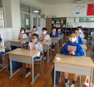 早速1時間目の月影の時間には、「家族への思いやり」というテーマで、登場人物の気持ちを考えたり、「やさしい気持ち」「大丈夫」という言葉について考えたりしました。