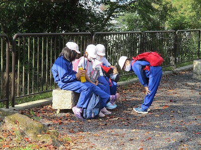 水分補給の休憩です。爽やかな陽気に恵まれ、みんなの歩みは軽快でした。