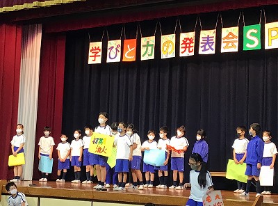 普段から“安全”のことを考えて生活していく大切さを学んだ3年生の発表でした。身の回りの安全点検や、安全に関わるポイント探しに、消防署見学など、体験学習を中心に、自分達の学びをまとめていきました。