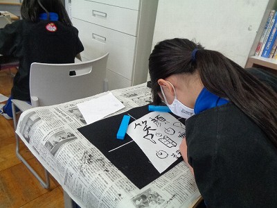 筆で絵や言葉を書き、作品を仕上げていきました。