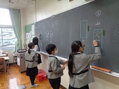 「急速」「休息」や「子葉」「使用」、「合う」「会う」などの漢字を見つけたお友達の発表をもとに、文章作りをすることができました。