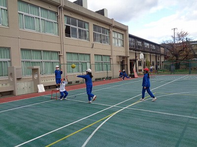 最後は、各コートで試合を少しやってみました。まだ、ルールが少しわかってきた段階なので、今後の練習の中で覚えていってほしいと思います。