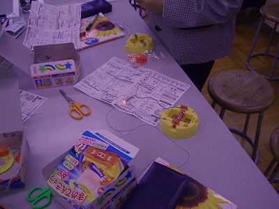 導線のビニールをはがしたり、導線を部品につないだり、と初めての細かい作業に取り組みました。