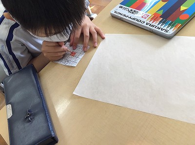 なんと、手作りのビンゴカード(たて5×横5)には、ひとつひとつ“本の題名”が書いてあったのです!学級文庫やみんなの中で人気のドラえもん科学シリーズの題名など。