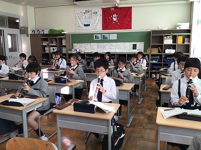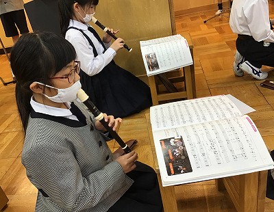 音楽室でみっちりと“エア”練習を行いました。“階名”で歌いながら、リコーダーの指使いも確実に進んでいます。