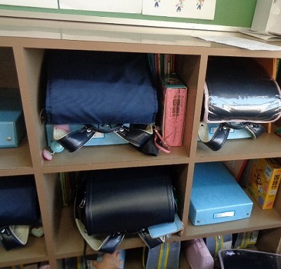 朝の教室、今日はロッカーの整理整頓をしました。ランドセル以外のものをきれいに並べ、ロッカーがすっきりしました。