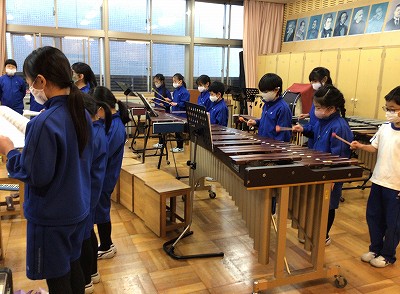 まずは、音楽室で歌と木琴の合奏です。木琴のはねるように打つ奏法を、多くの3年キッズが身につけ、まさに弾むように合唱奏が完成しました。