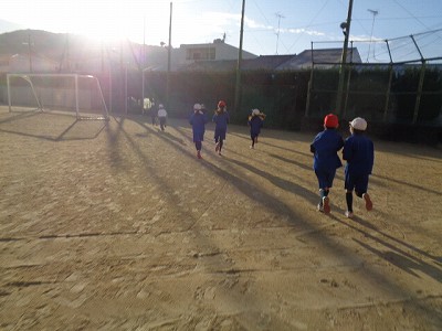 2学期最後のマラソンでした。1分で1周を目安に、5分の間に速い人で5~6周ほど走りました。寒い中ですが、走りこんで体があたたまりました。