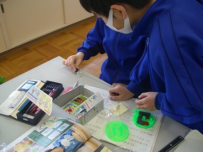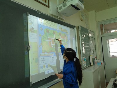 宝の場所はどこかを考えたり、スタートからゴールまでのルートを、東西南北を使ったり、地図記号を読み取りながら自分で説明します。数人はみんなの前での発表にチャレンジしました。