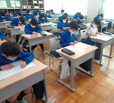 今日は、漢字大会の本番テストの1回目でした。テスト開始と同時に、真剣な表情で取り組んでいました。