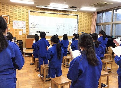 毎年行っている宗教行事「聖日参拝」の音楽法要で歌う「四弘誓願」と「法然上人頌」の練習をしています。
