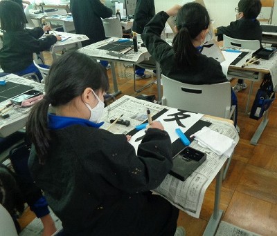 画仙紙に三文字を書くことにも慣れ、集中して仕上げることができました。