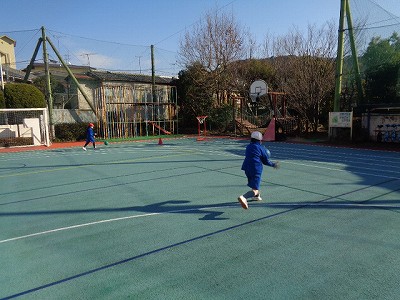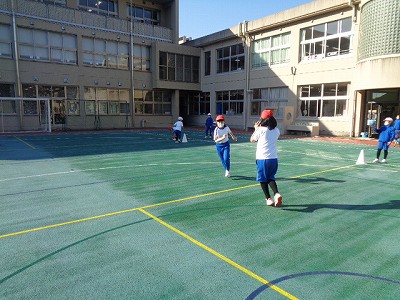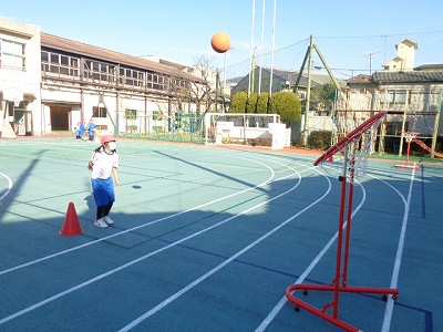 ドリブルは小さなドリブルにならないように、運動場を1周するなどして上手にドリブルできるように練習しました。