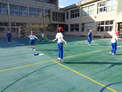 午後、春のような陽気の中、体育はポートボールの練習となわ跳びの練習です。いろいろなドリブルの練習と、シュートの練習をしました。スキップドリブル、横向きドリブル、右手左手を交互に使ってのドリブルなどなど色々取り組みました。