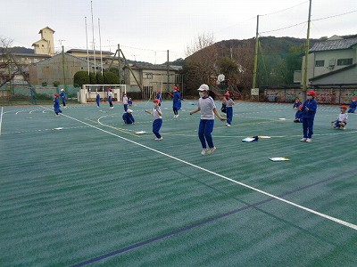 なわとびにも取り組み、今日は前跳び30秒跳び・後ろ跳び30秒跳びで5回UP!を目指しました。なわとびリレーも、チーム対抗で取り組みました。