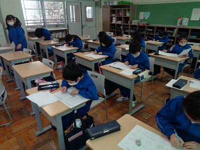 早くできた人は、練習問題プリントを進めたり、虫食い算の問題にトライする人もいました。
