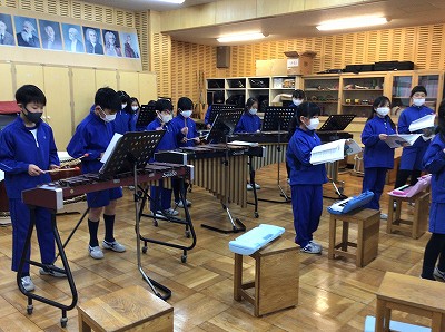本日の仕上げは、歌唱と楽器陣のコラボです。さらに、音をはっきりさせて響き合いを楽しみたいと思います。