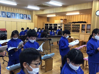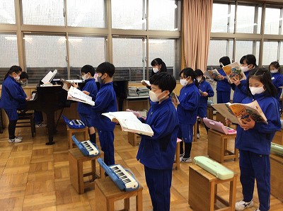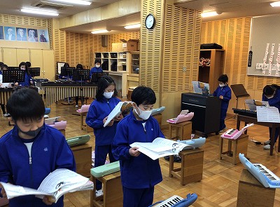 “オブリガード”の役割を担う「鍵ハモパート」のメロディが途切れることなく、また、休符の部分も確実にキャッチして演奏できるようになりました。歌唱の時間に、「ゆっくりとした速さで歌うなら何番?」の意見交換をしていました。歌うときだけではなく、こうした演奏の時にも、スピードを変えた表現も楽しめそうです。