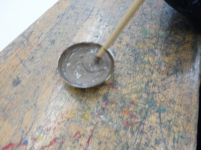 いまいちピンときていないつぶやきがたくさん聞こえてきました。それでもすりつぶした土を水で溶き、バインダー代わりの木工用ボンドを混ぜたあたりで、ようやく児童も少し信用してくれたようです。