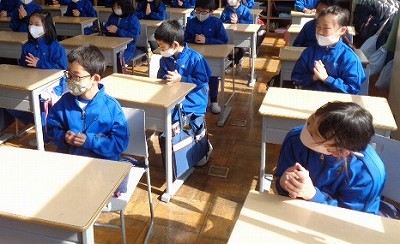 今週の給食は「世界の料理」を味わう献立が続いています。給食後の食後の挨拶では、その国の言葉で「おいしい!」も言っています。